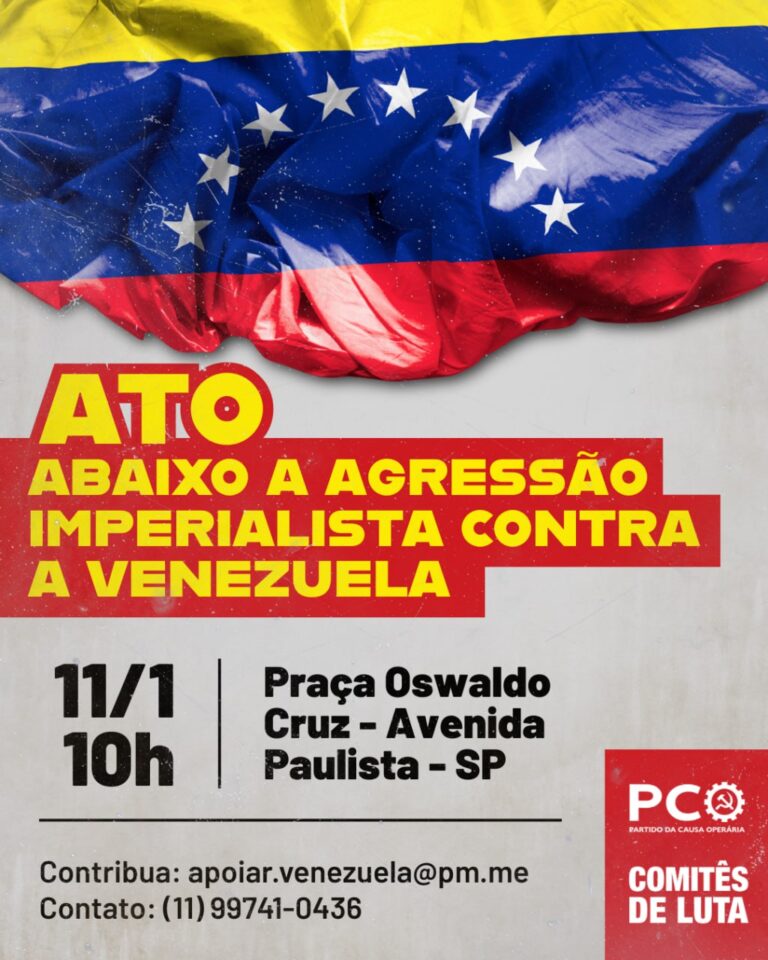 Para el PCO, la movilización venezolana debe ir acompañada de una iniciativa en Brasil, en solidaridad con el pueblo venezolano y contra la escalada del imperialismo norteamericano en el continente. Por eso, el Partido convoca a una manifestación nacional el domingo 11 de enero de 2026, a las 10 horas, en la Plaza Oswaldo Cruz, en la Avenida Paulista, en São Paulo, con caravanas de varios estados.